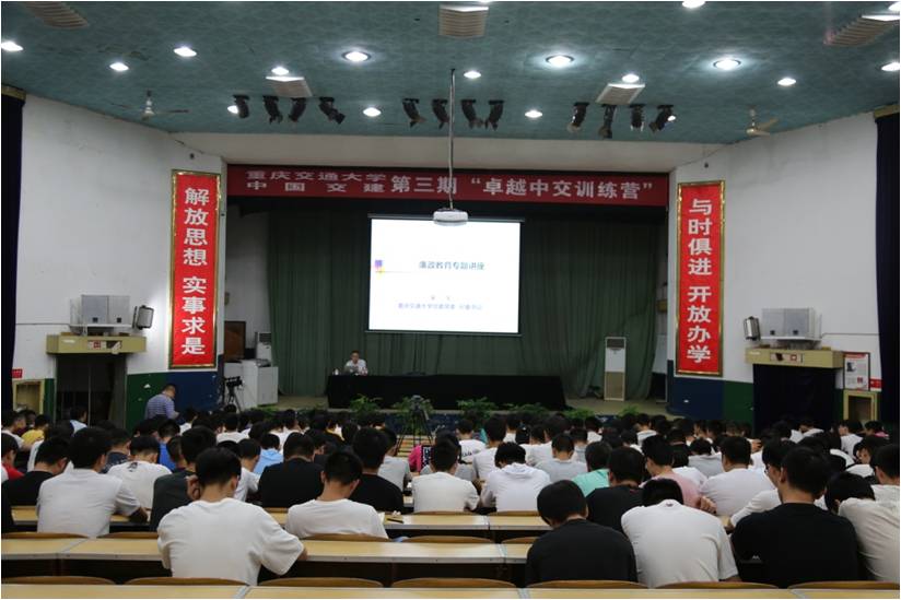 5月27日下午,中国交建、重庆交通大学第三届“卓越中交训练营”在电教厅举行“廉政教育”专题讲座,校党委常委、纪委书记宋飞应邀主讲,为学员们讲授了一堂生动活泼、意义重大的廉洁课,也是一次针对同学们毕业离校前的集体廉洁谈话。
